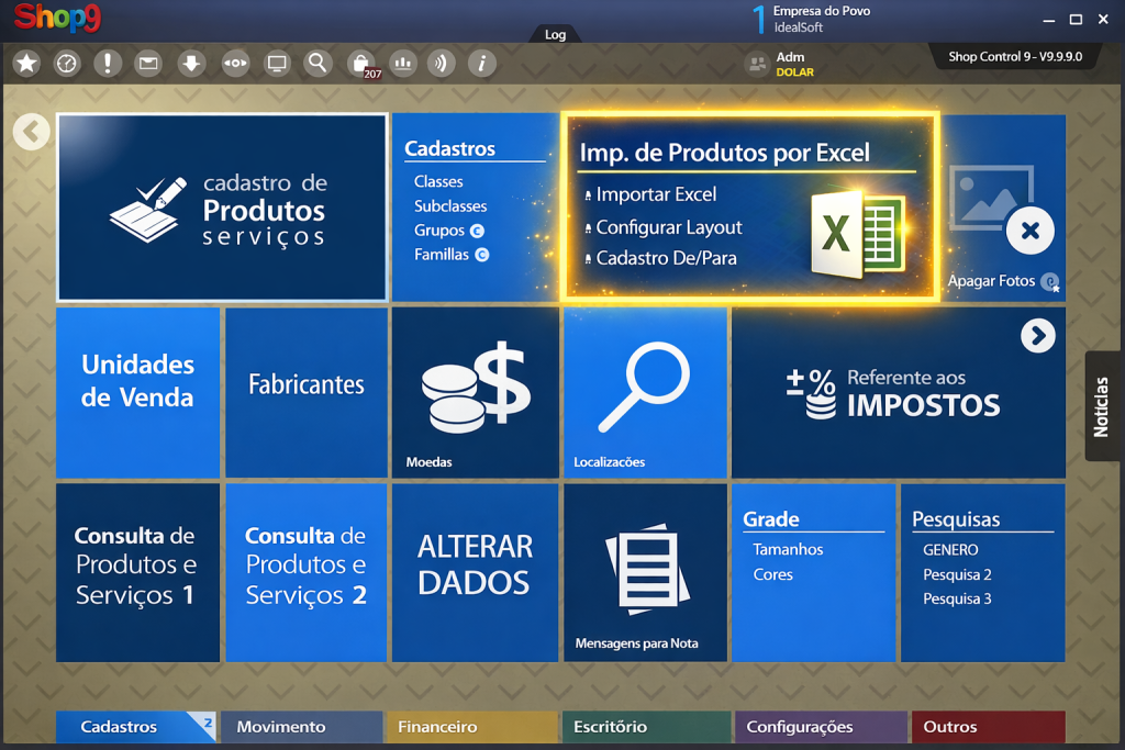 A versão 9.9.10.0 do Shop Control trouxe uma evolução importante: a antiga importação por arquivo texto foi substituída por um processo baseado em planilhas Excel. Isso significa que você pode usar o mesmo formato que já recebe dos fornecedores ou que já domina no dia a dia — sem precisar converter arquivos ou aprender formatos técnicos.